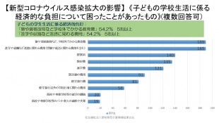 コロナ禍での家計の影響による、子どもの将来にも係わる進路変更があった状況は、貧困の連鎖に影響しないか、更には、子の精神的影響はないか等、今後検証していく必要を感じている。