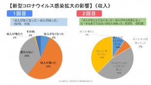 収入:「収入がほとんどなくなった・収入が半分程度になった・半分までではないが収入が減った」63% 6割強