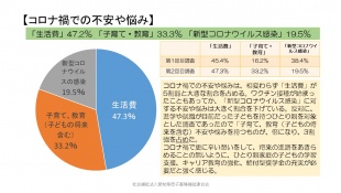 「生活費」47.3% 「子育て・教育」33.2% 「新型コロナウイルス感染」19.5%
