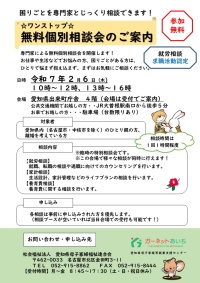 ワンストップ!無料個別相談会のご案内【令和7年2月6日(木)】