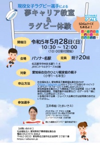 現役女子ラグビー選手による「夢キャリア教室 &ラグビー体験」参加者募集